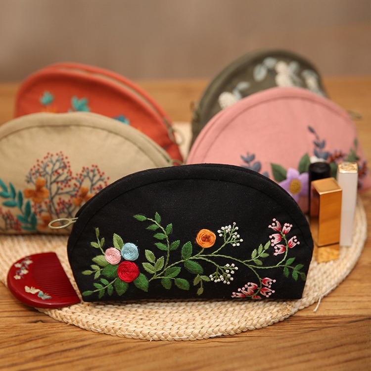 夏の布の新しい刺繍の包みの魯刺繍の女性のハンドバッグの手作りのシンプルな花の図案の三日月の包み