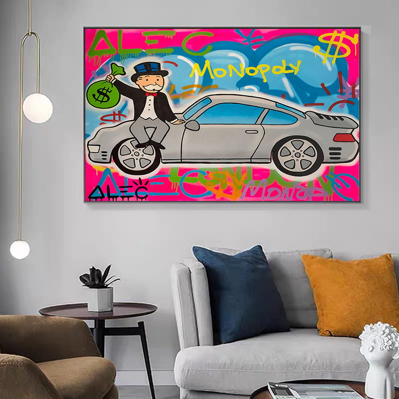 落書き老人とドル財布と自動車キャンバス画壁画ポスター壁芸術寝室客間現代装飾