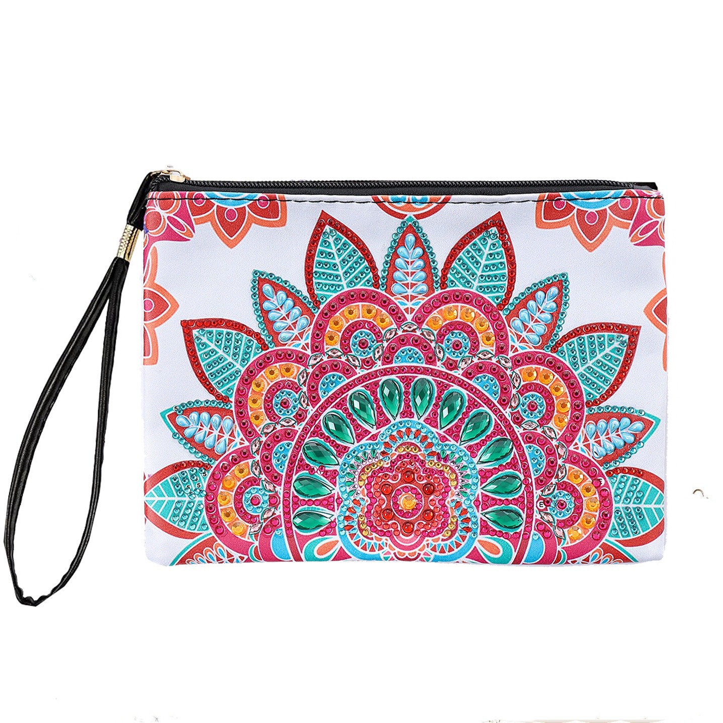 5D1ピース5D DIYダイヤモンド塗装ハンドバッグ化粧バッグ、曼荼羅スタイル手作りダイヤモンドアート工芸