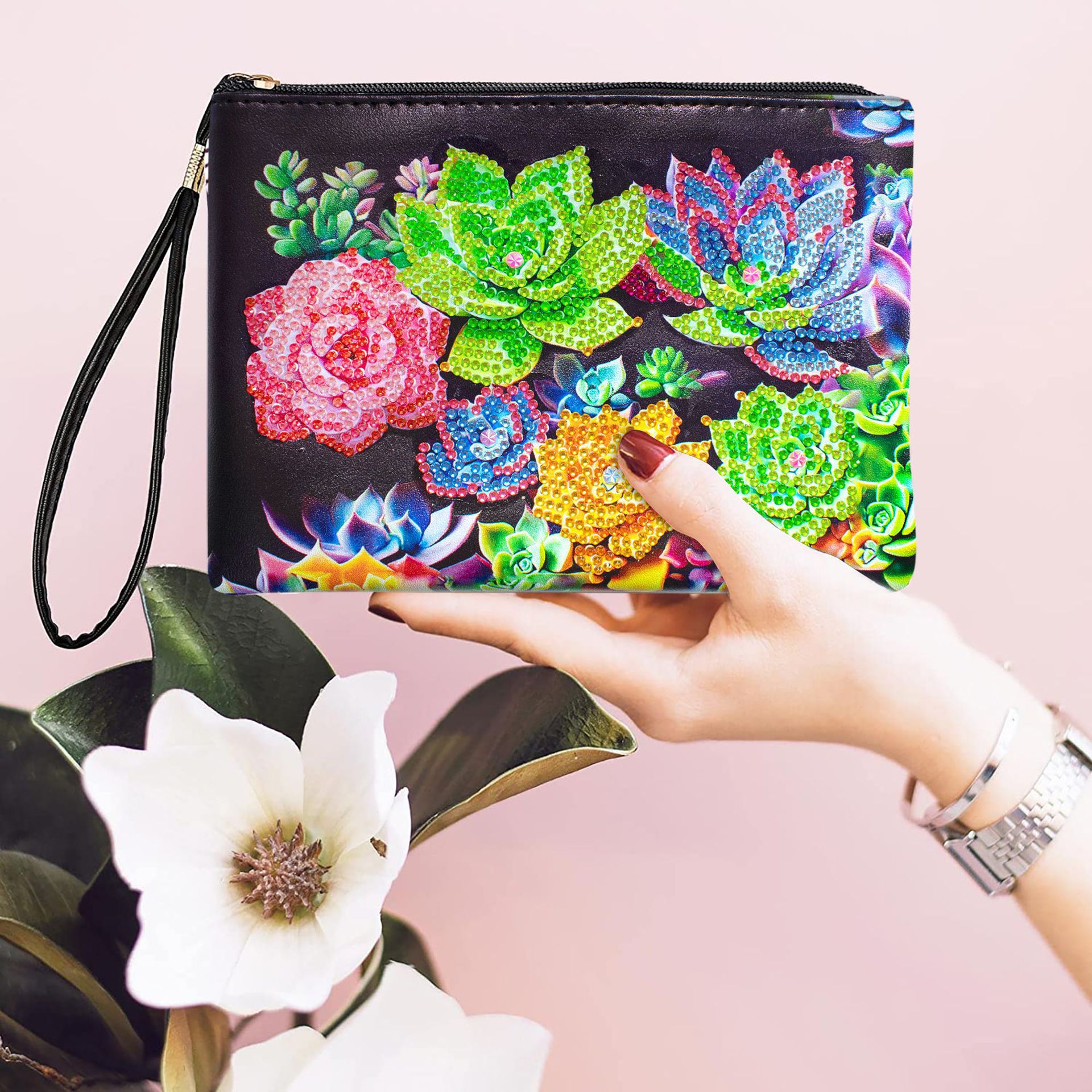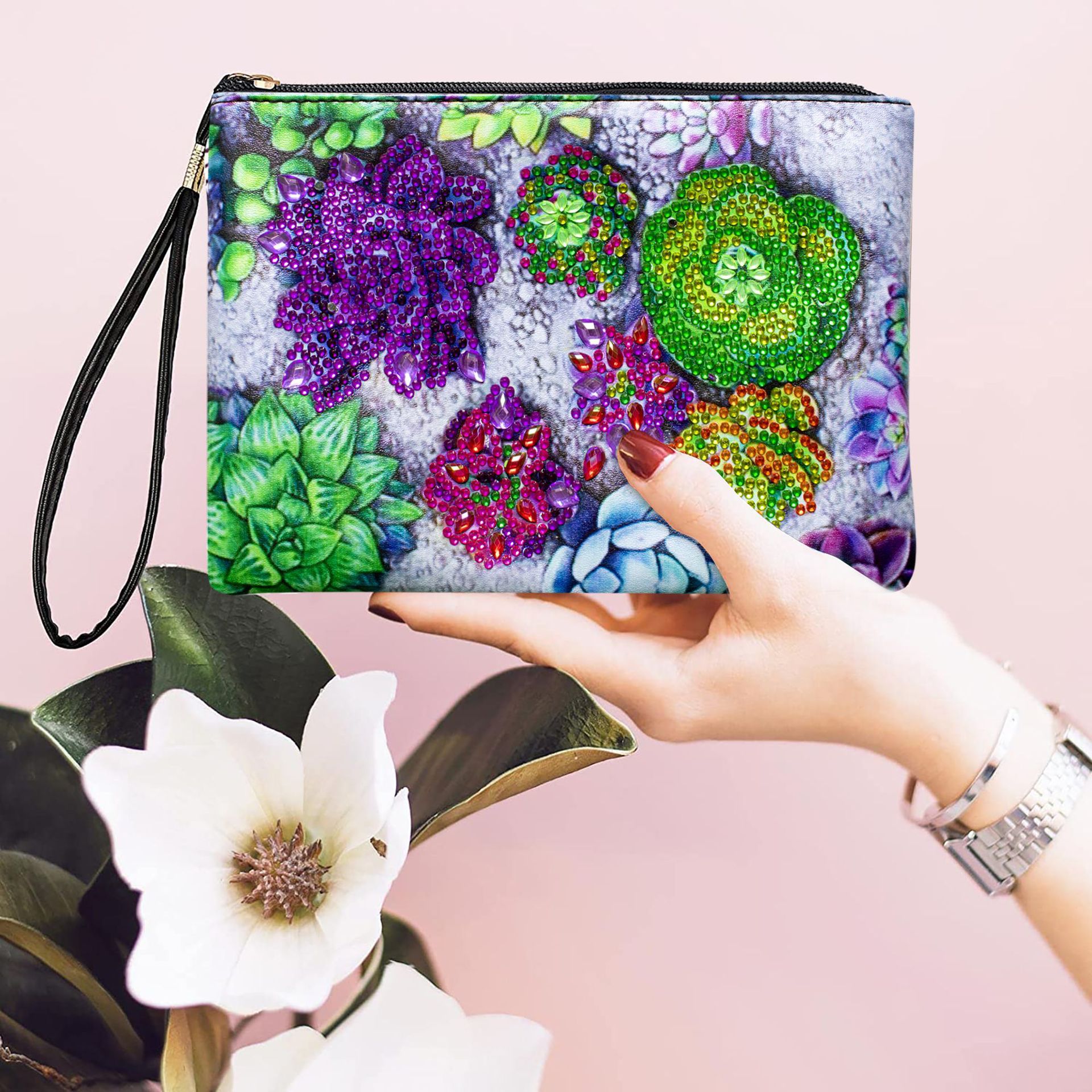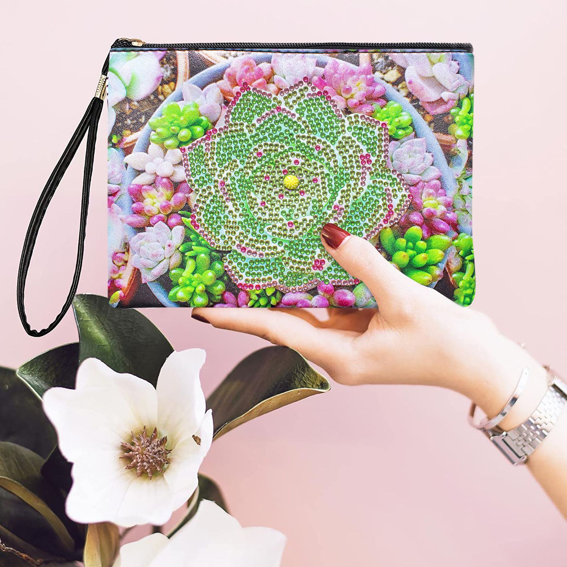 5D1ピース5D DIYダイヤモンド彩色絵ハンドバッグ化粧バッグ、多肉植物テーマ手作りダイヤモンドアートクラフト