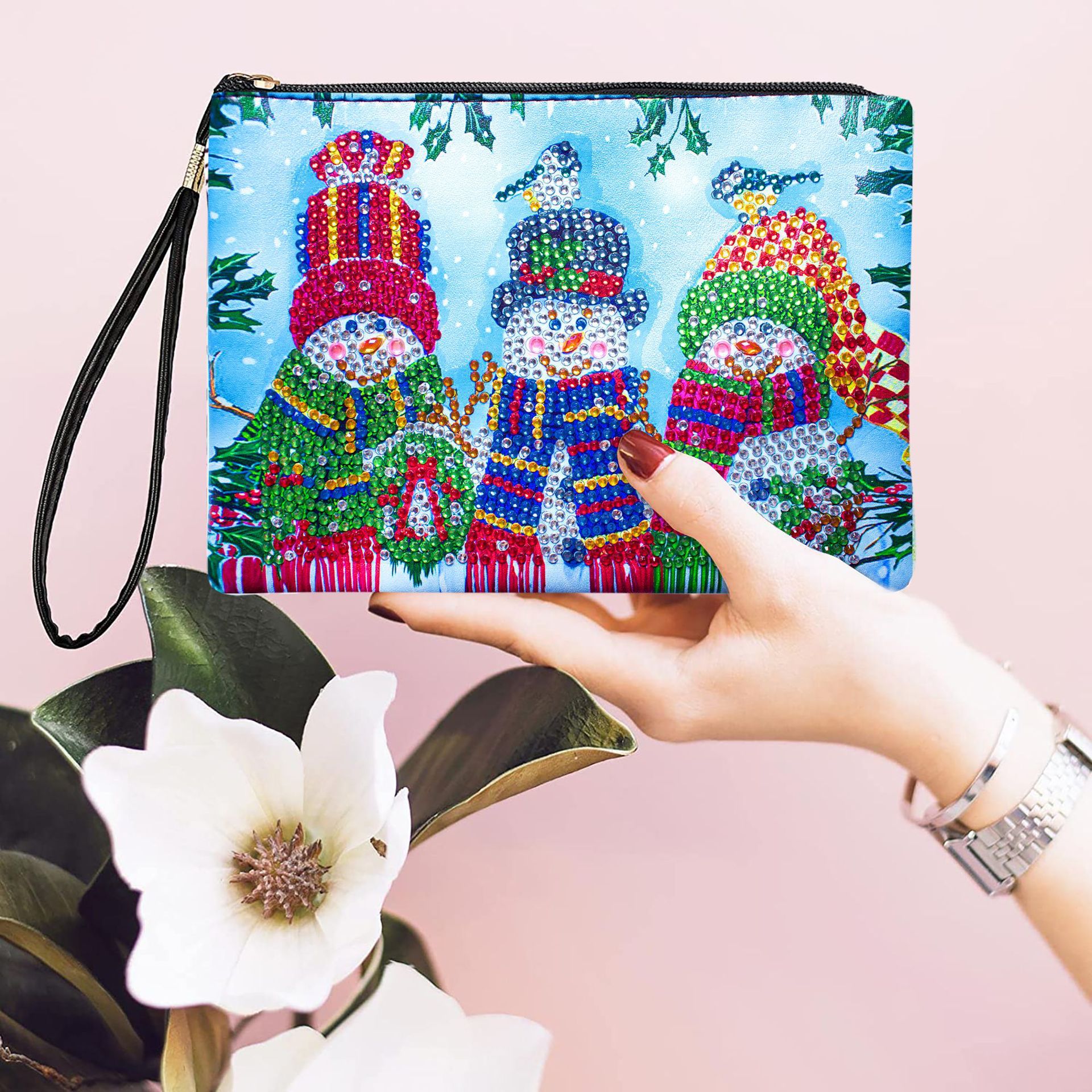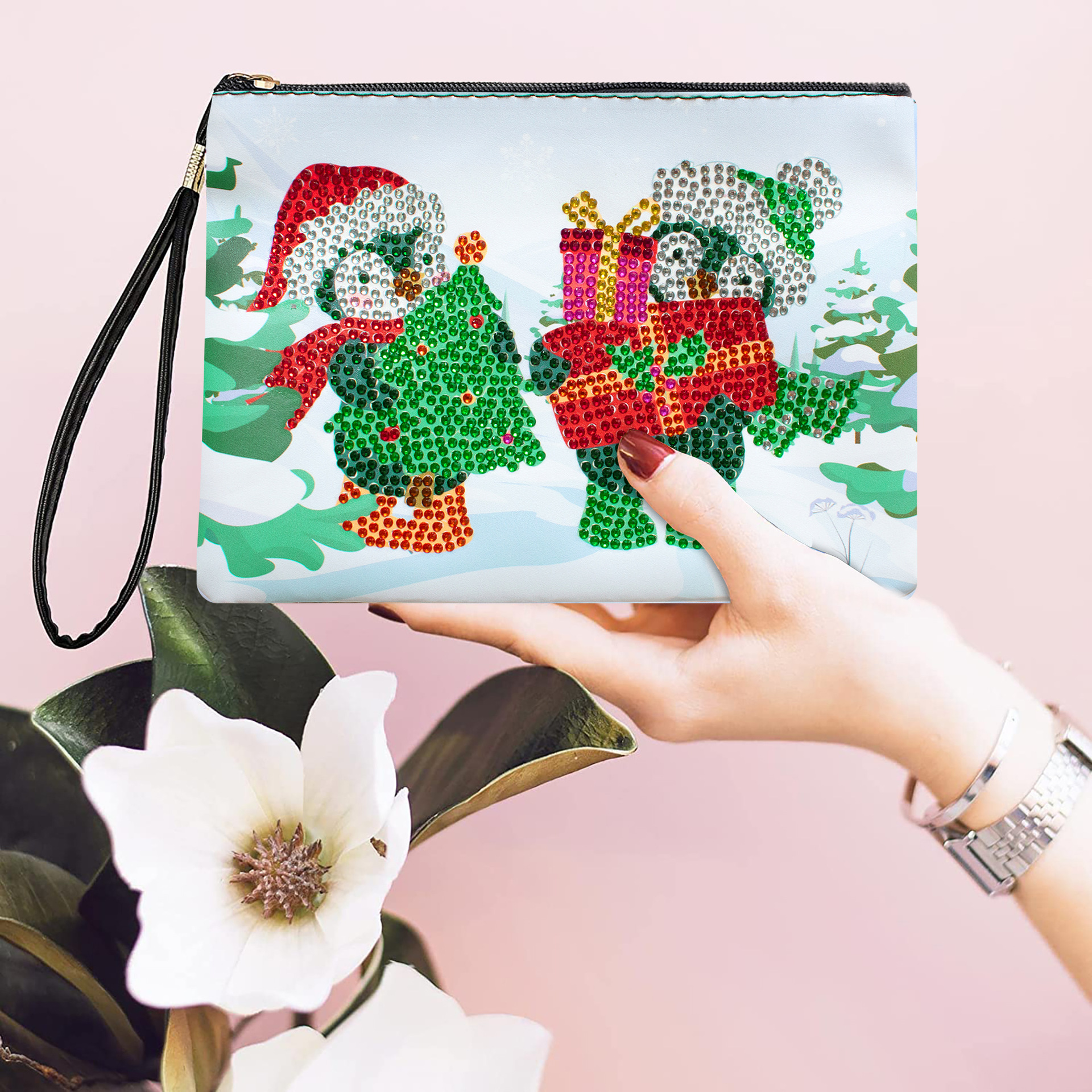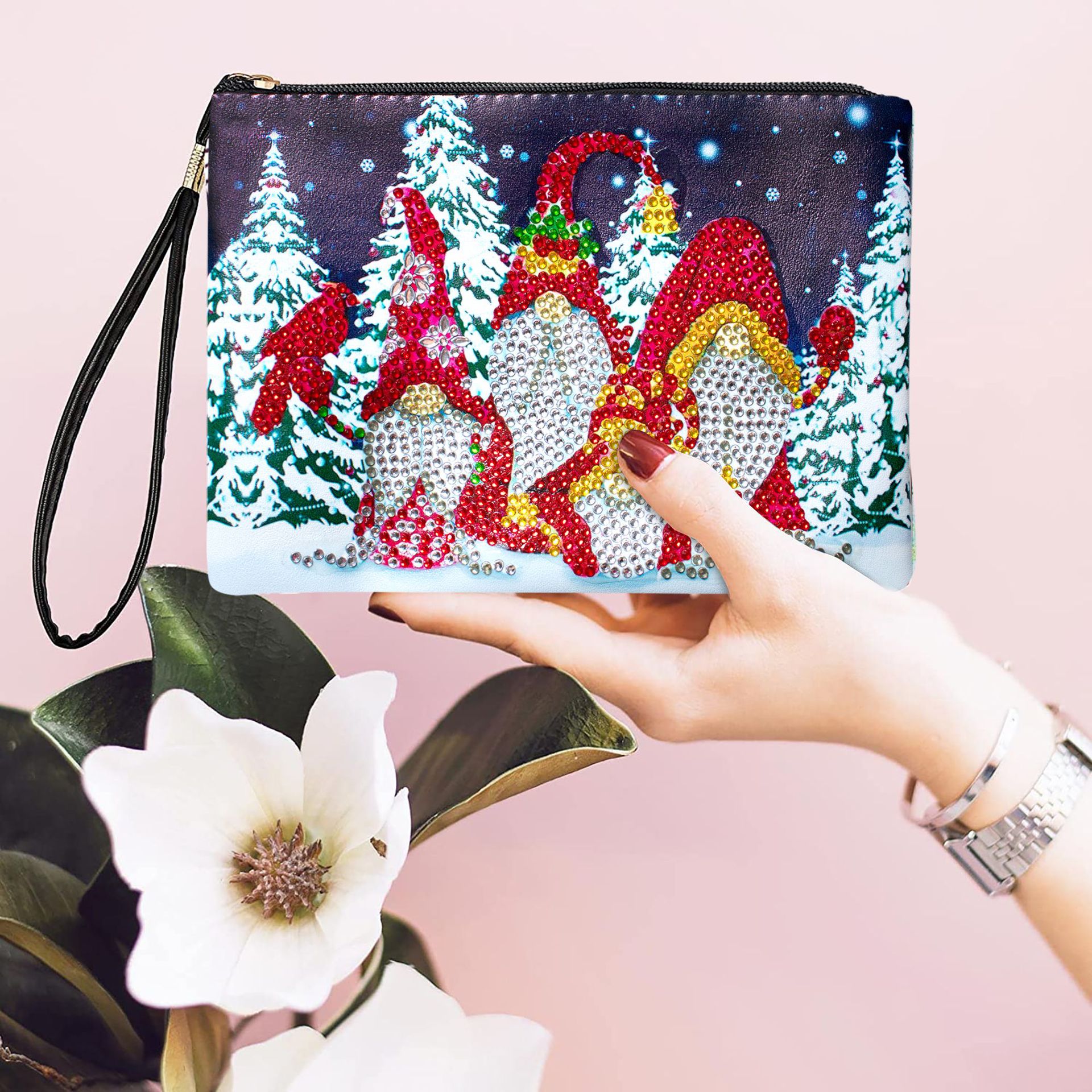 5D5D1ピース5D DIYダイヤモンド絵画ハンドバッグ化粧バッグ、クリスマススタイル手作りダイヤモンドアート工芸バッグ