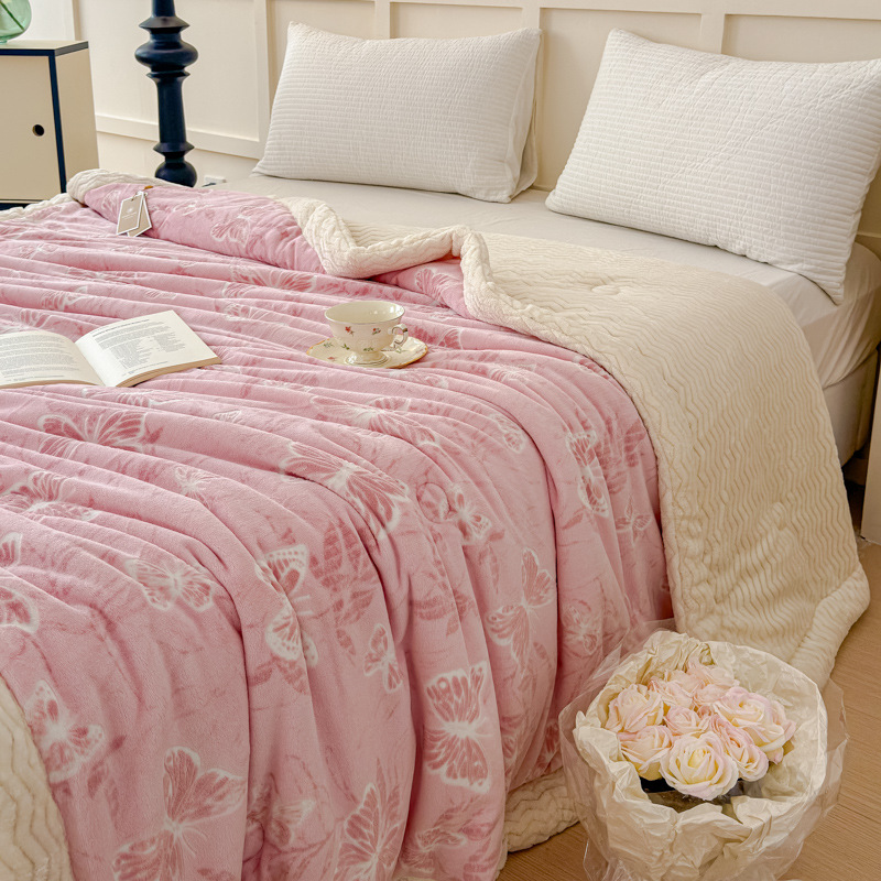 立体彫刻ミルクベルベット綿を挟んで毛布を包む冬の新型家庭用高坪量は保温キルティング毛布を厚くする