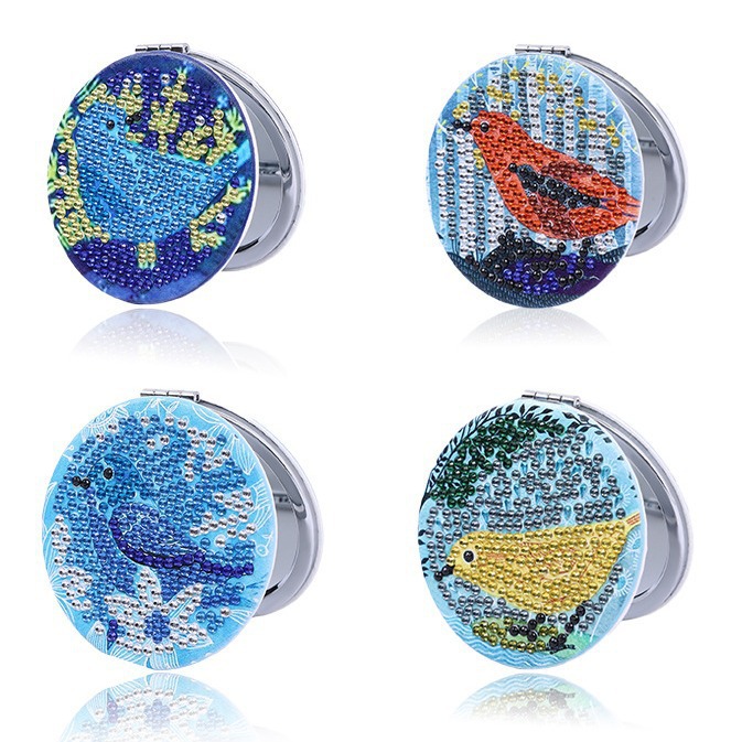 財布や旅行に適した小さな鏡付きの1pcsダイヤモンド絵画キット小鳥スタイル