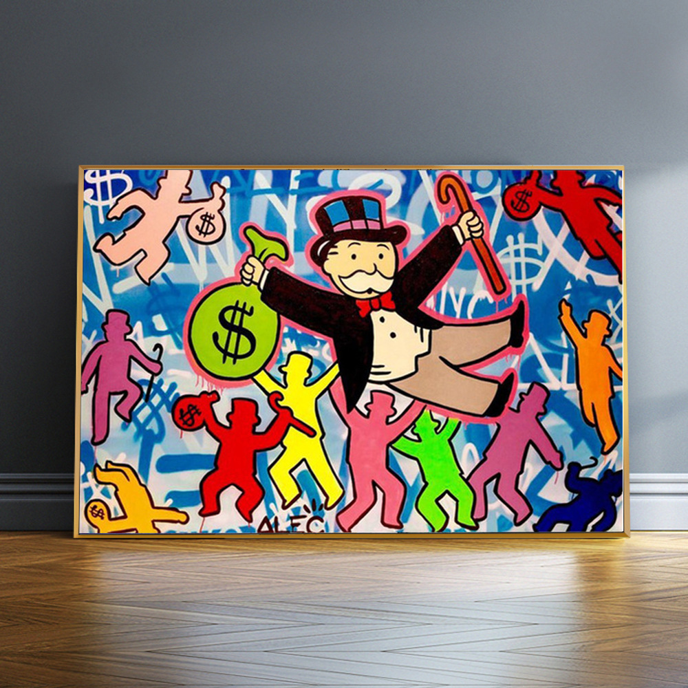 落書き芸術の大金持ちは財布を持ってキャンバス画の壁画のポスターの壁の芸術の寝室の客間の現代の装飾画を持ちます。