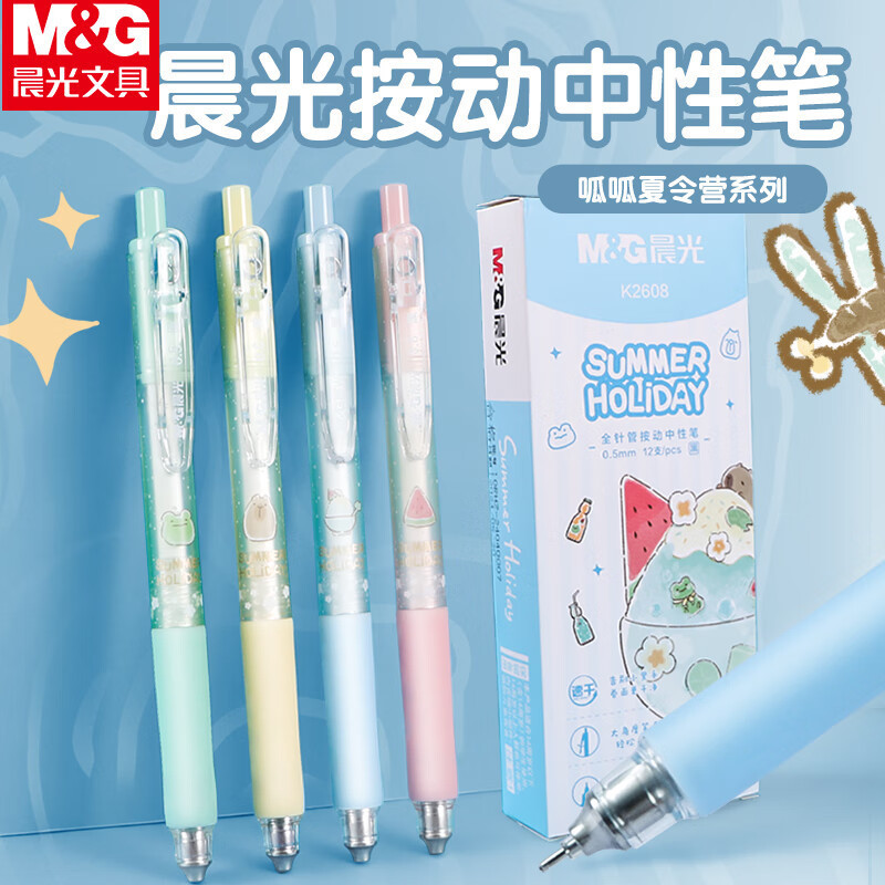 モーニングライト サマーキャンプ プレスゲルペン フルニードルチューブ 0.5mm 速乾性 学生用 低重心筆ペン AGPK2608
