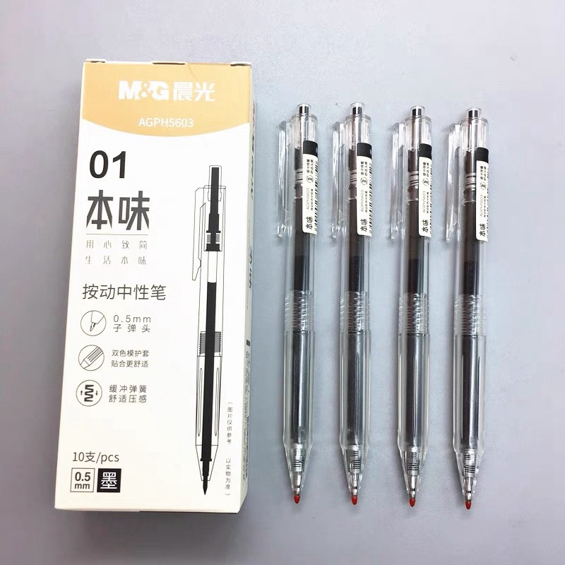 朝の光の文房具の卸売りの経典の事務の金は動の芯のG-5の黒色の赤色の墨の青い色の0.5mmの水の芯を押します。