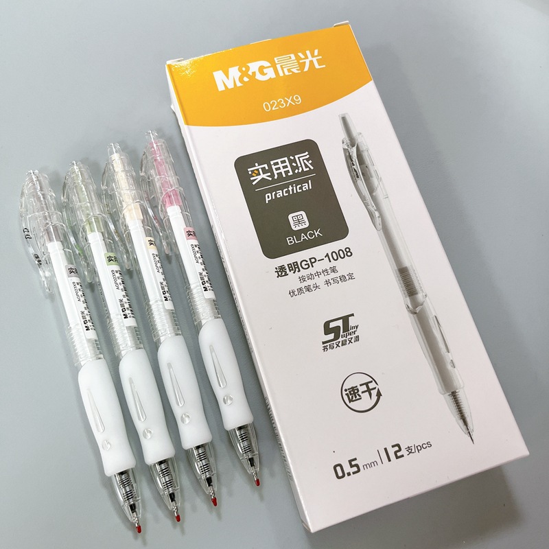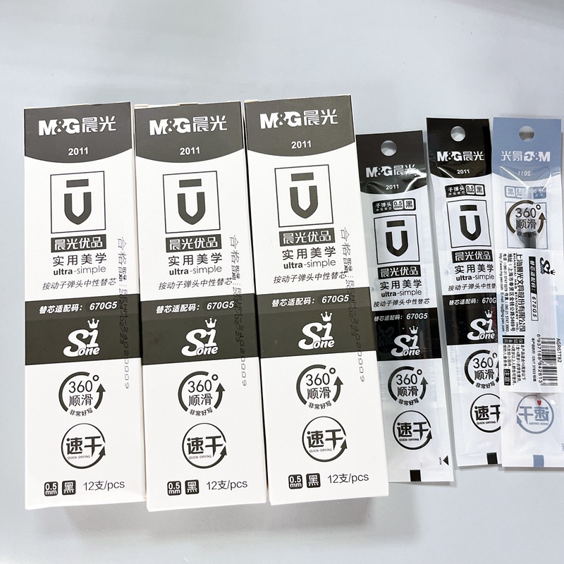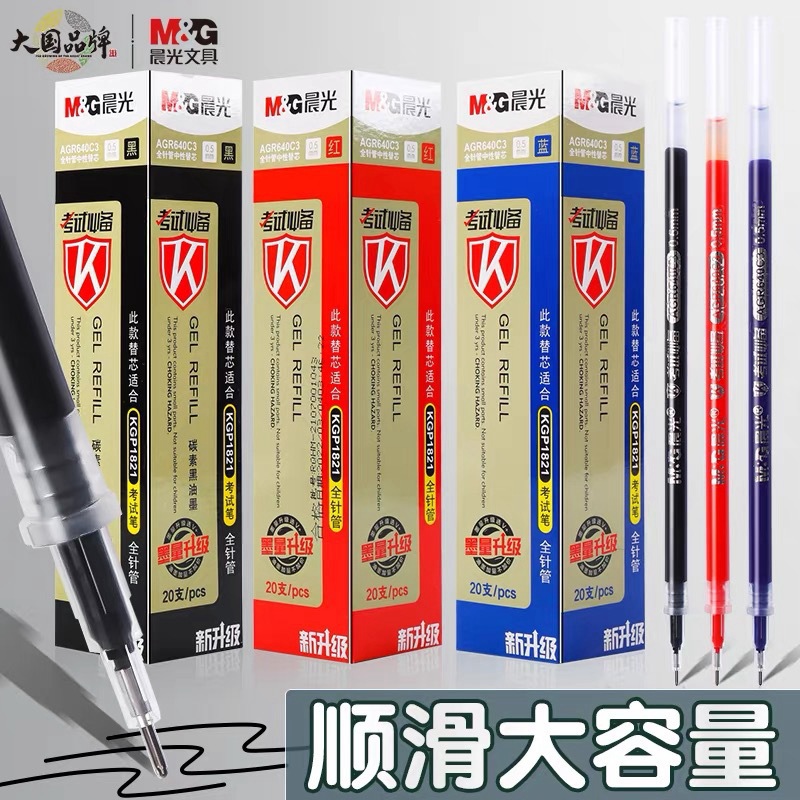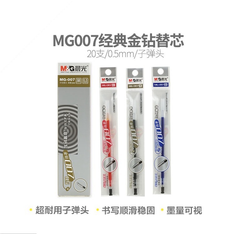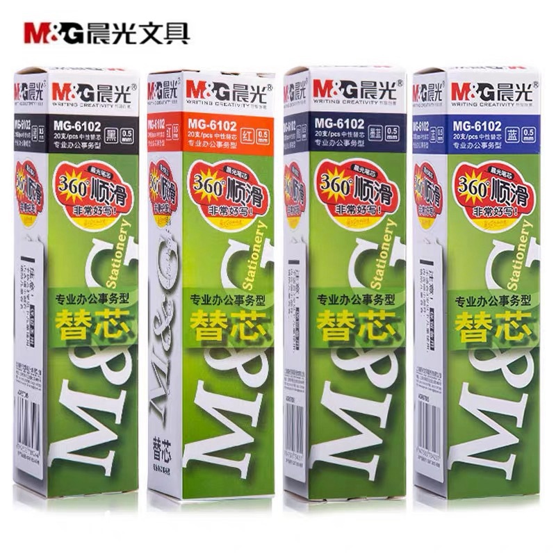 朝光の文房具MG007は金の弾頭の芯の0.5mmの黒色の赤色の青い中性のペンの芯をかぶせます。