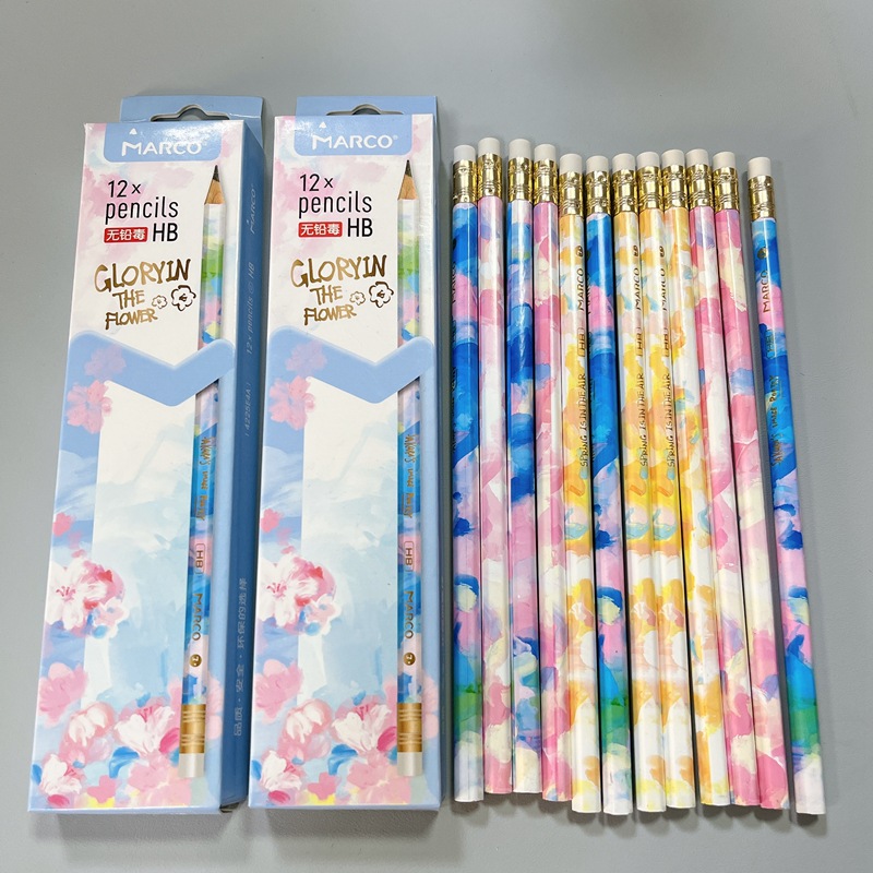 マルコ4225E4Aマルコ出発光影号六角棒HB/2B木棒铅笔ゴム付ヘッド高颜値