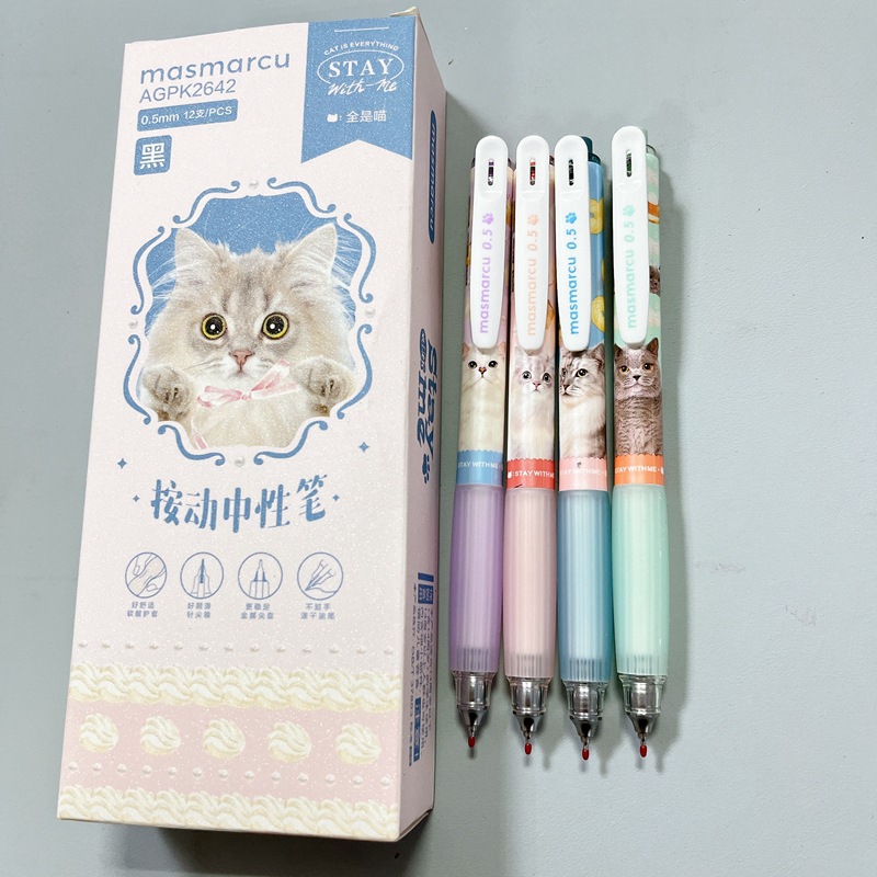 朝光マスマークはすべてニャンコシリーズK2642針先錐速乾黒押し中性筆猫模様