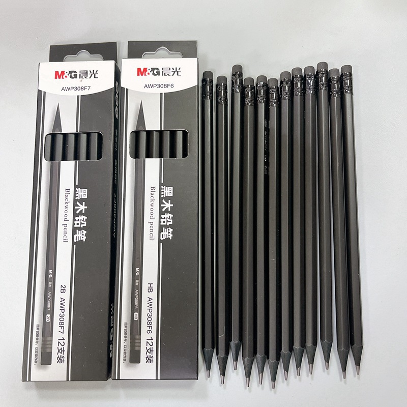 朝光308F6/308F7木竿铅笔小学生用铅笔黒木铅笔六角型2B/HB革头付き