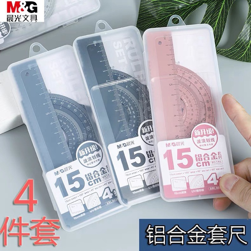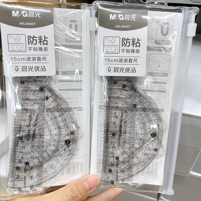 朝の光の定規のarl960g 3お茶のシリーズのプラスチックの透明な定規の15cmの絵の波のまっすぐな定規の三角板