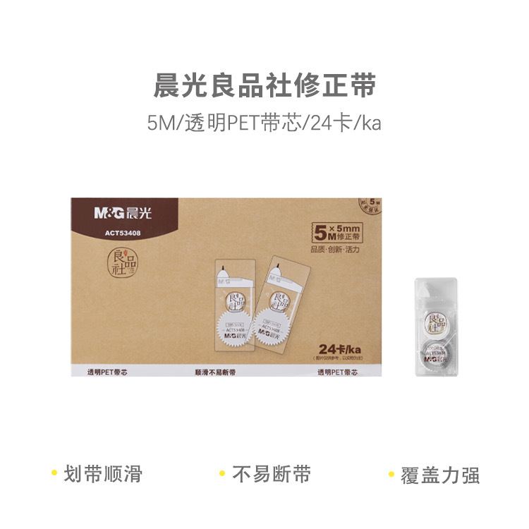 Chenguang ACT53408 Liangpinshe シリーズ学生修正テープ シンプルな透明な白 5m 修正テープ