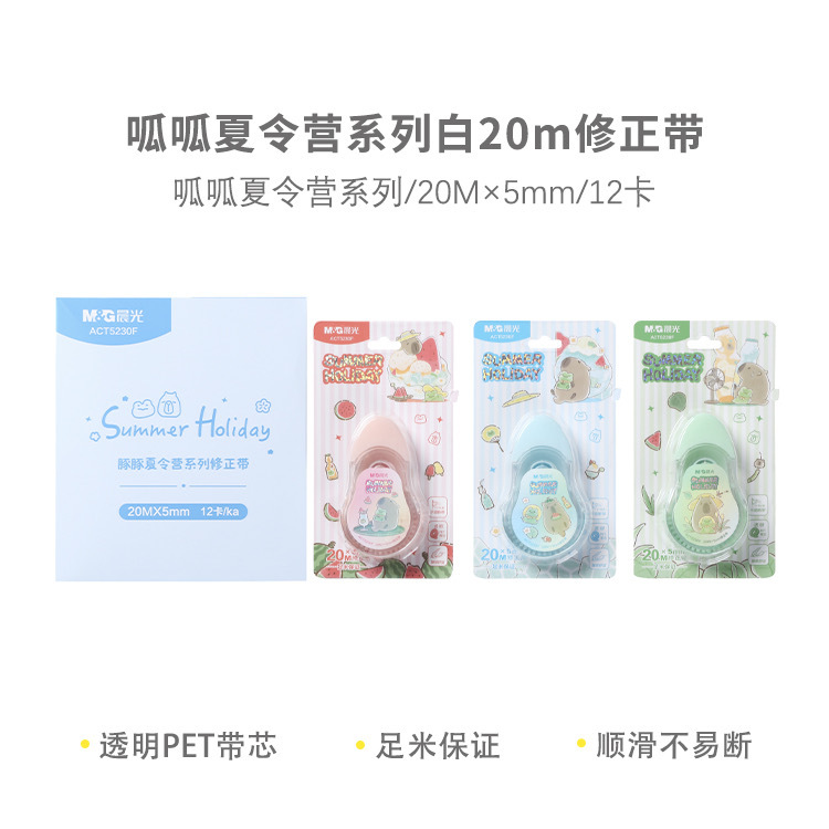 Chenguang Guagua サマーキャンプシリーズ ACT5230F 修正テープ PET 透明芯 20m 学生ユニバーサル