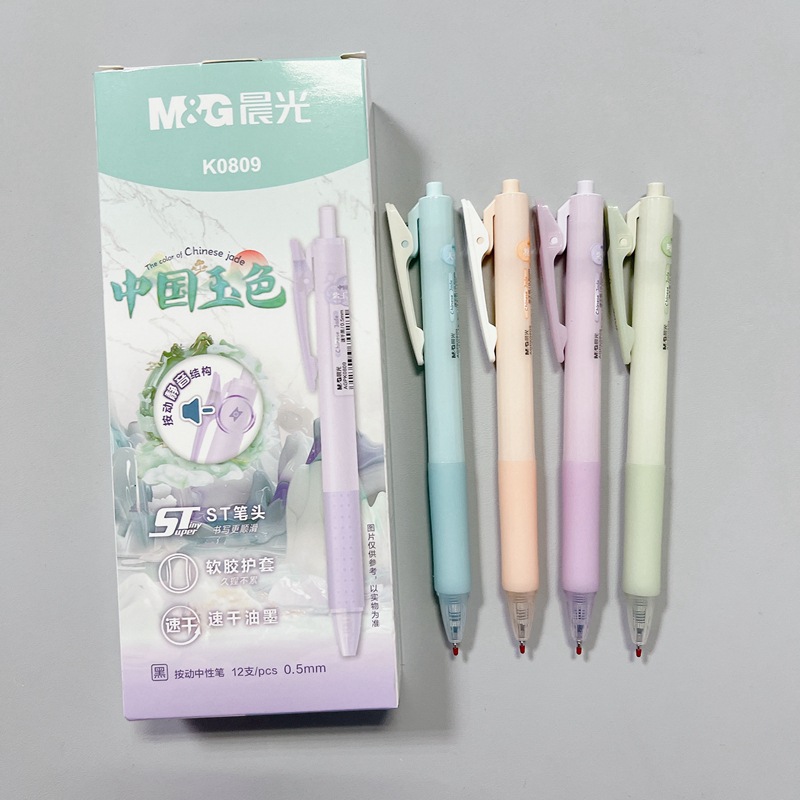 Chenguang AGPK0809 中国翡翠色プレスミュートソフトゴムシース ST ペン先速乾性 0.5 黒ゲルペン