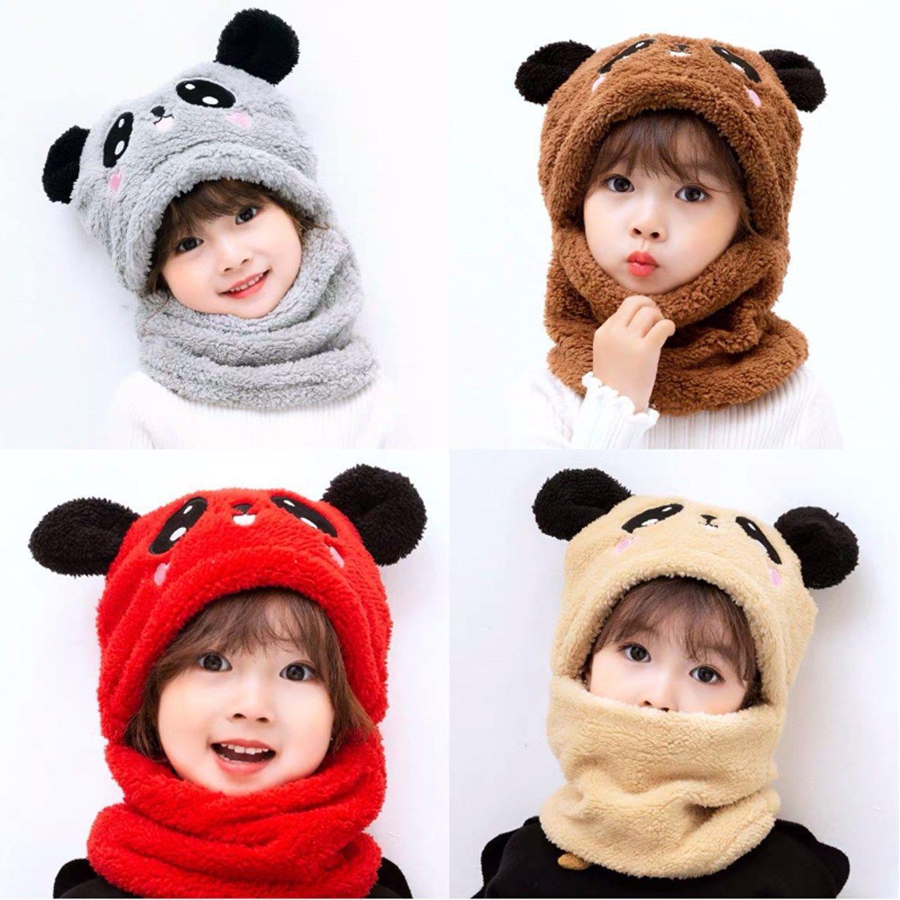 新しい子供のぬいぐるみの帽子秋冬の男女の子供の漫画のパンダの連体の帽子の屋外の防寒の保温の帽子