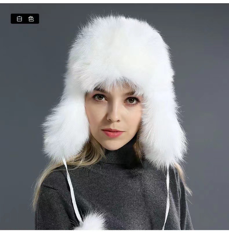 毛の雷の前線の帽子の女性の厚い保温の毛のボールの耳の帽子の冬のベルベットは毛皮のキツネの毛の白い綿の帽子をまねます。