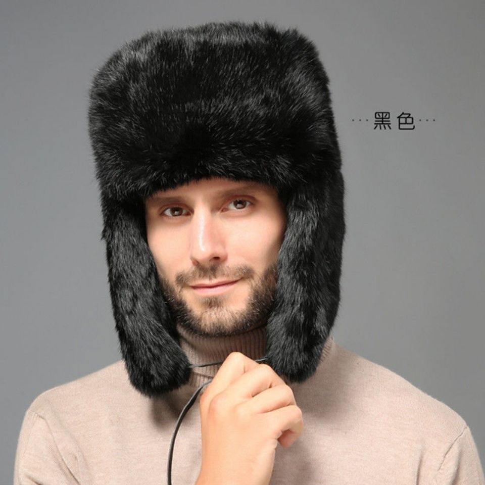 ウサギの毛の雷鋒の帽子の男性の冬の中高年の東北の毛皮の帽子の保温の屋外の厚い耳のお父さんの帽子