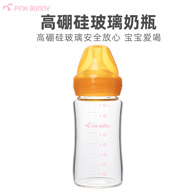 ベニーウサギ新生児乳児ガラス哺乳瓶広口径膨張防止哺乳瓶高ホウ素シリコンガラス哺乳瓶240ml