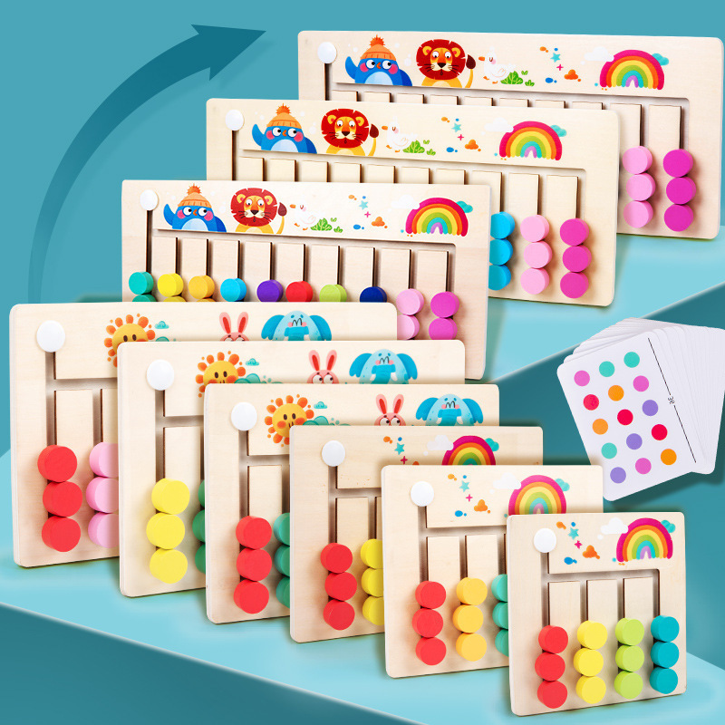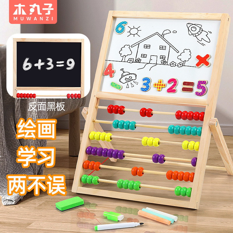 越境児童木製早教創意三合一磁気玉運珠対数板色分類益智玩具