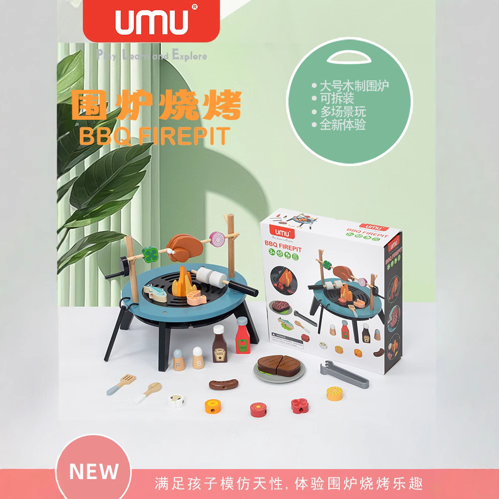 UMU囲炉裏バーベキュー子供木製おもちゃシミュレーションおまままごとキッチンおもちゃ屋外ゲームバーベキュー供給クロスボーダー
