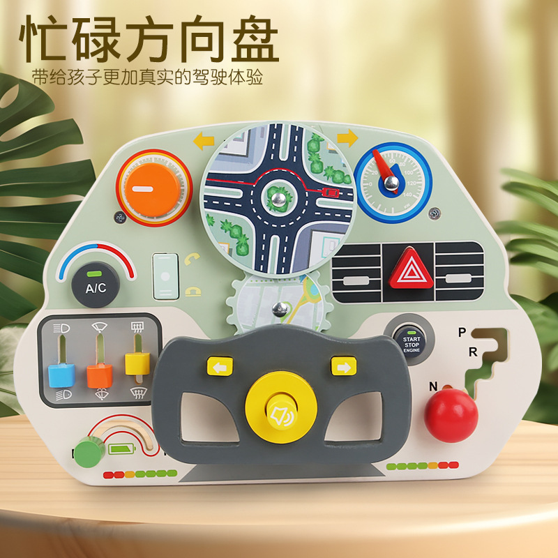 クロスボーダー蒙氏模擬運転ハンドル電子スイッチライト忙しい板早教児童知育玩具木質