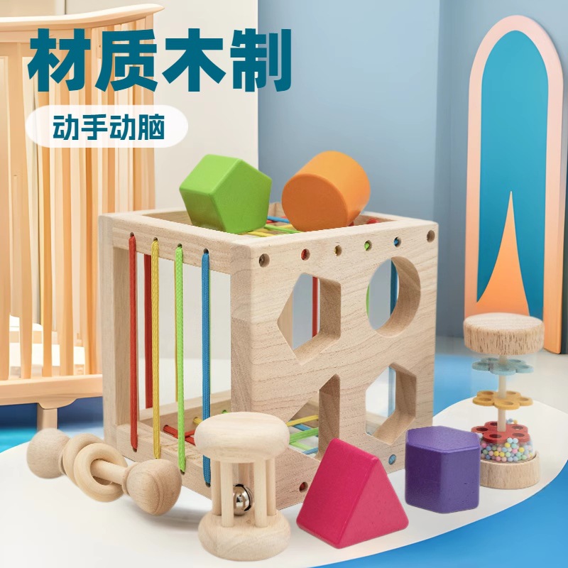クロスボーダー子供多機能木製蒙氏八合一打球動物ペア釣り早教知育玩具