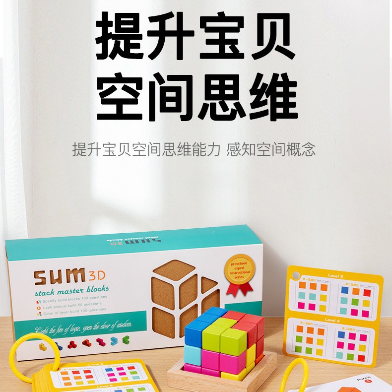 テトリス積み木子供早教知育玩具パズル木製創造的思考立体パズル4-6歳