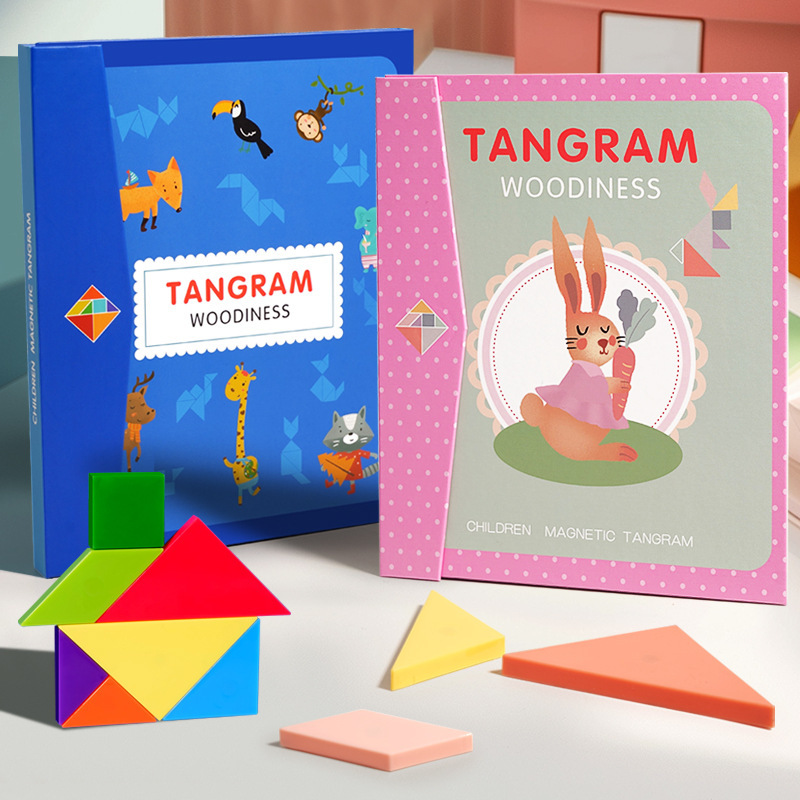 越境児童益智早教七巧板木製玩具幼稚園の磁気益智幾何形状の合わせ板教具