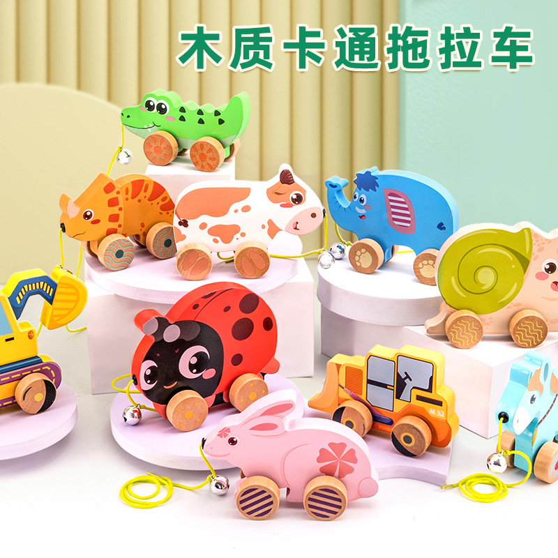 子供の漫画のモップの歩行車の乳幼児のおもちゃの益智の赤ちゃんの動物のロープのワニの車の木製のおもちゃ