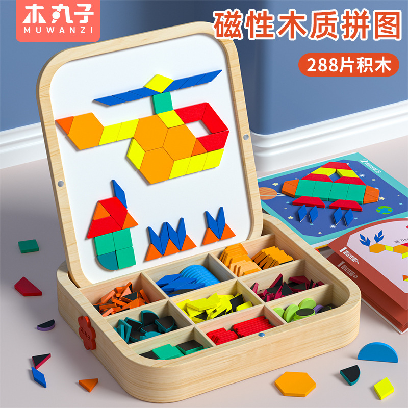 子供磁気パズル七巧板磁気幾何学形状百変積み木小学生早教益智木玩具