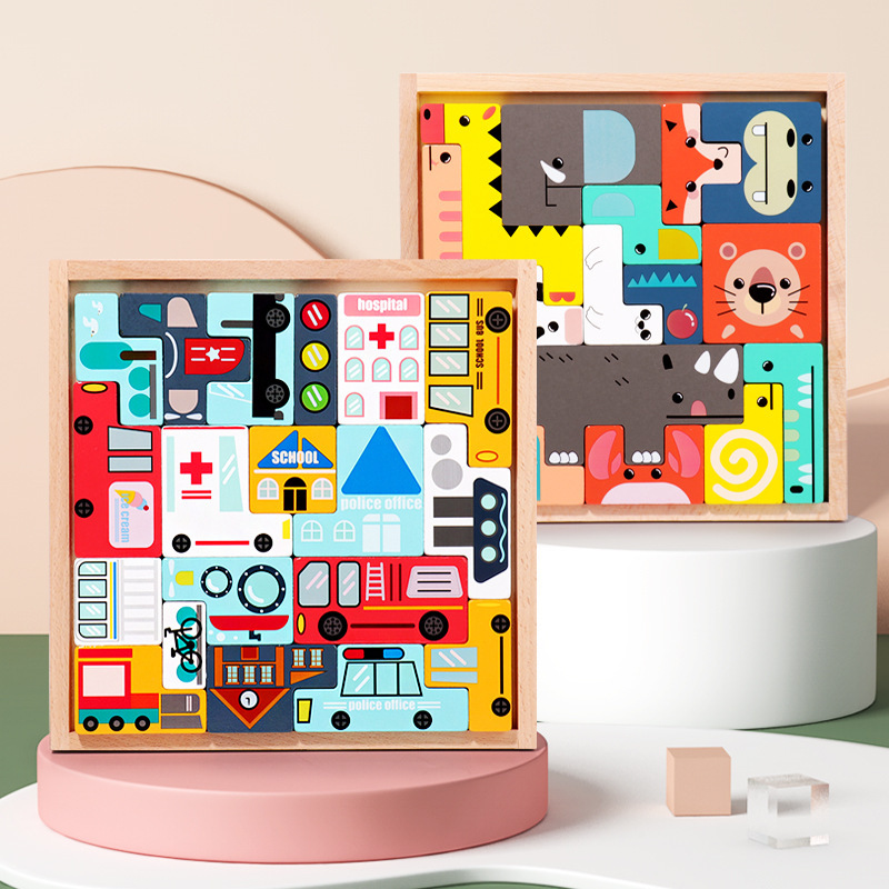 動物テトリス積み木3d立体パズル子供早教認知交通パズル