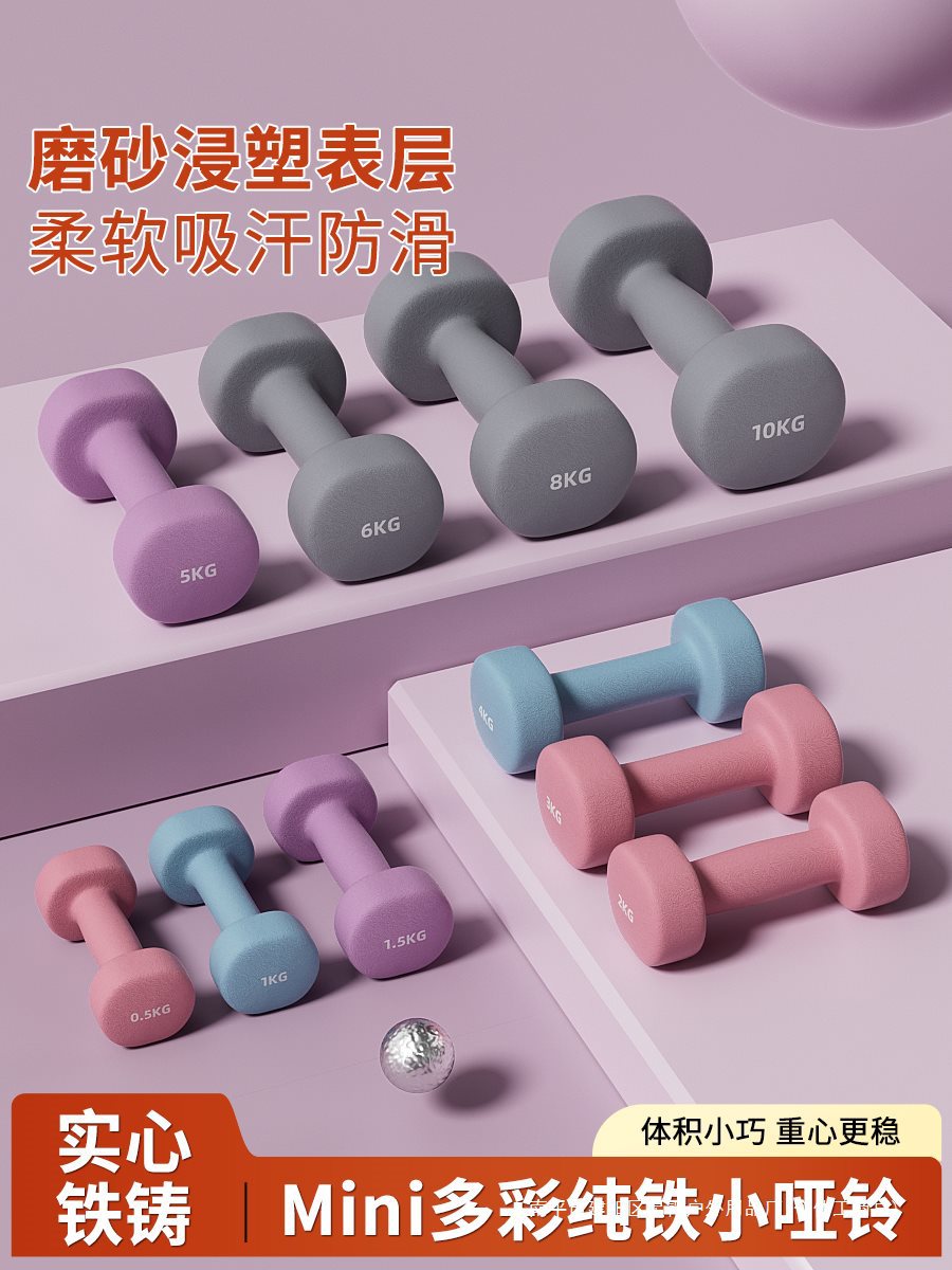 女性用プラスチック浸漬ダンベル、男性用腕筋ヨガ、学生、子供用家庭用器具、純鉄滑り止め小型ダンベル