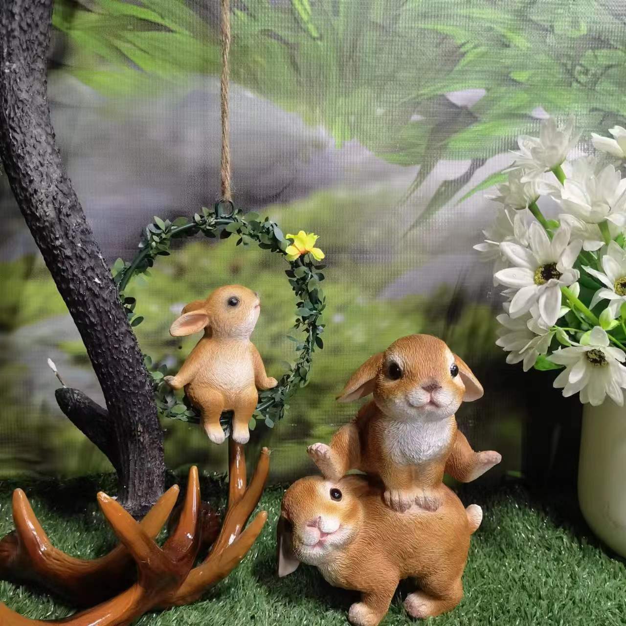 クロスボーダーのアイデアかわいい漫画のシミュレーションのウサギの樹脂の置物の花園のベランダの装飾品のウサギの装飾のペンダント