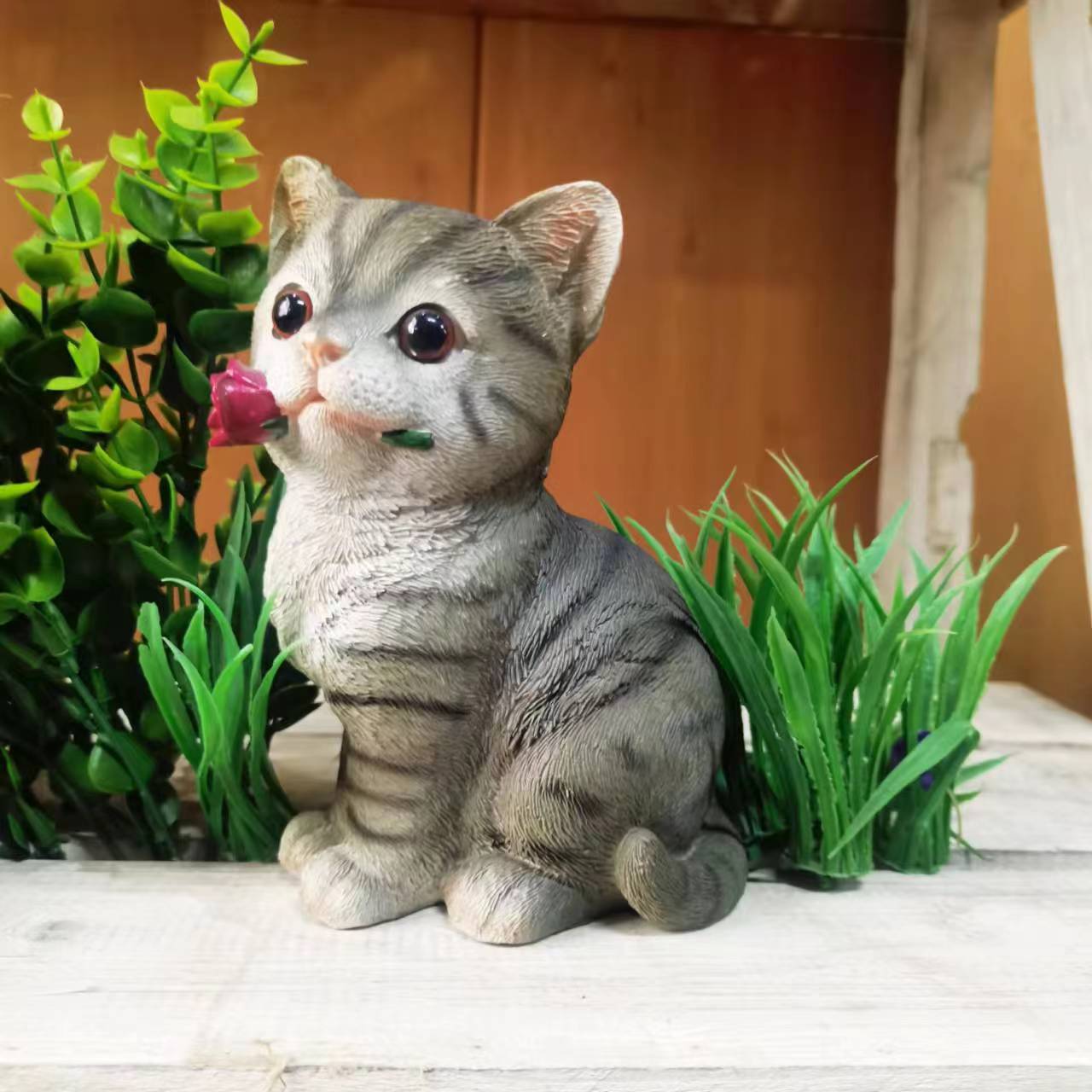 越境創意シミュレーションかわいい猫樹脂置物アウトドアガーデン芝生装飾動物樹脂置物