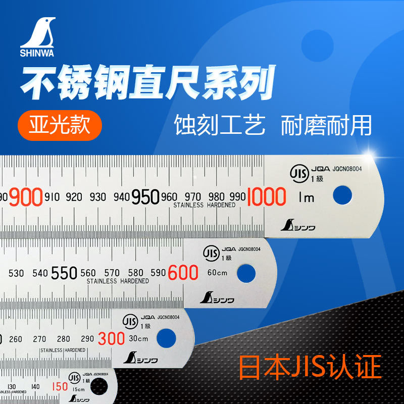 日本親和shinwaペンギンブランドステンレス直尺亜光鋼板定規高精度15/30cm1m