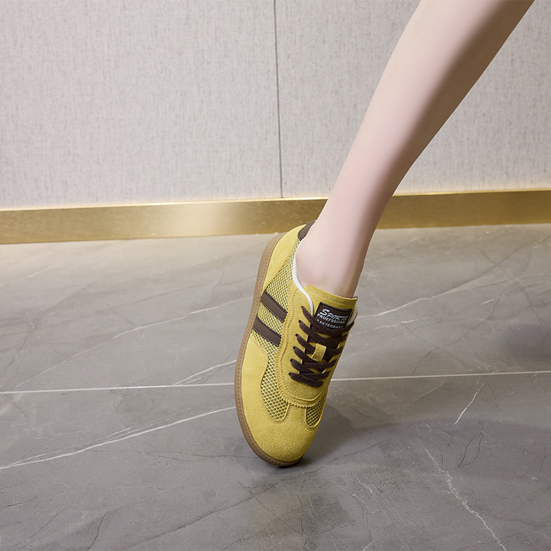 2025 新製品本革お父さん靴女性の厚底高さ増加メッシュ通気性スポーツシューズカジュアルレースアップ学生靴女性