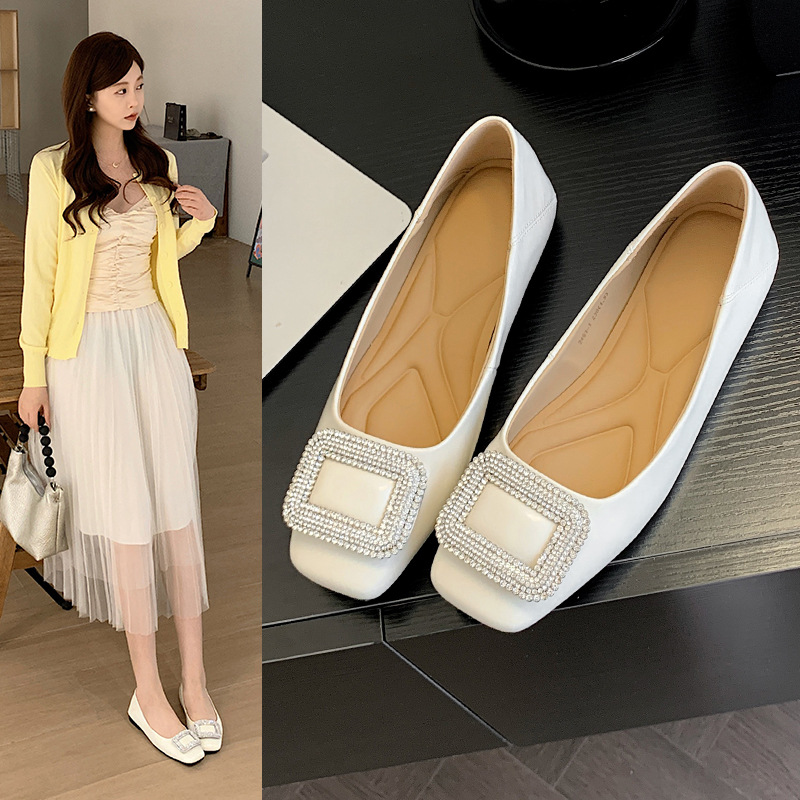 女性用第一層牛革薄底カジュアルシューズ、韓国風ラインストーンおばあちゃん靴、片足カジュアル二つ折りエッグロールダンスシューズ