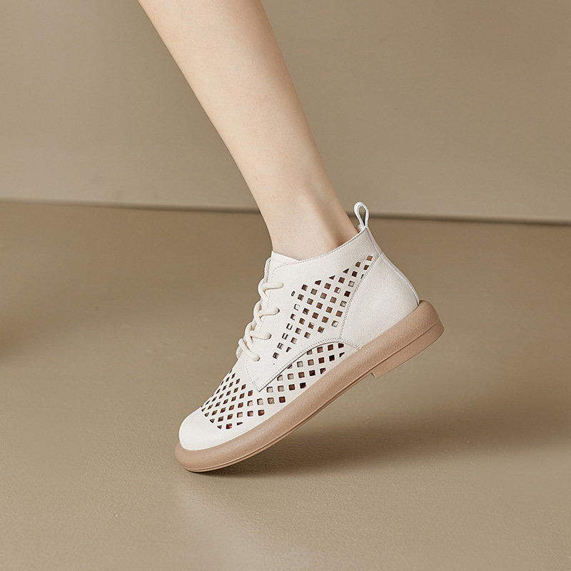 2025春夏の新商品の透かし彫りのマーティンブーツの女性の韓国版は春の夏の薄いタイプの通気性の復古のショートブーツの女性を持ちます。