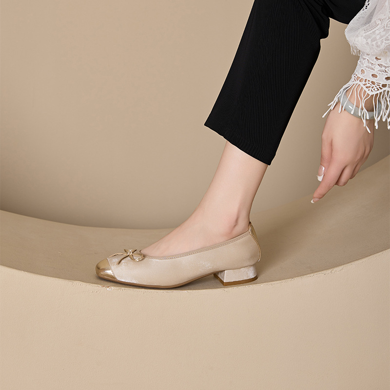 2025 本革ファッションシューズ女性のための国民的トレンドスタイルのリボン女性のシングルシューズソリッドカラースリッポンカジュアルシープスキンシューズ