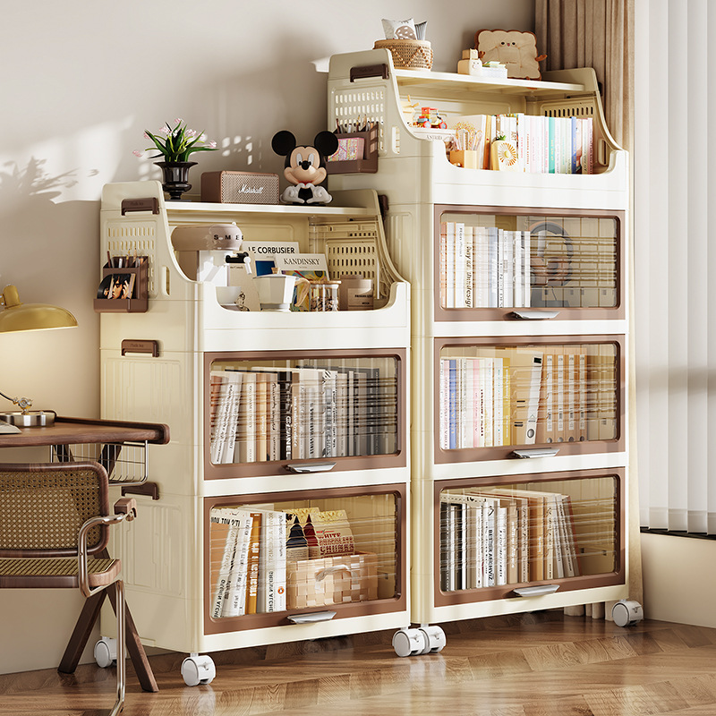 折りたたみロッカー本棚防塵大容量車輪付きカートプラスチック棚リビング多機能収納キャビネット