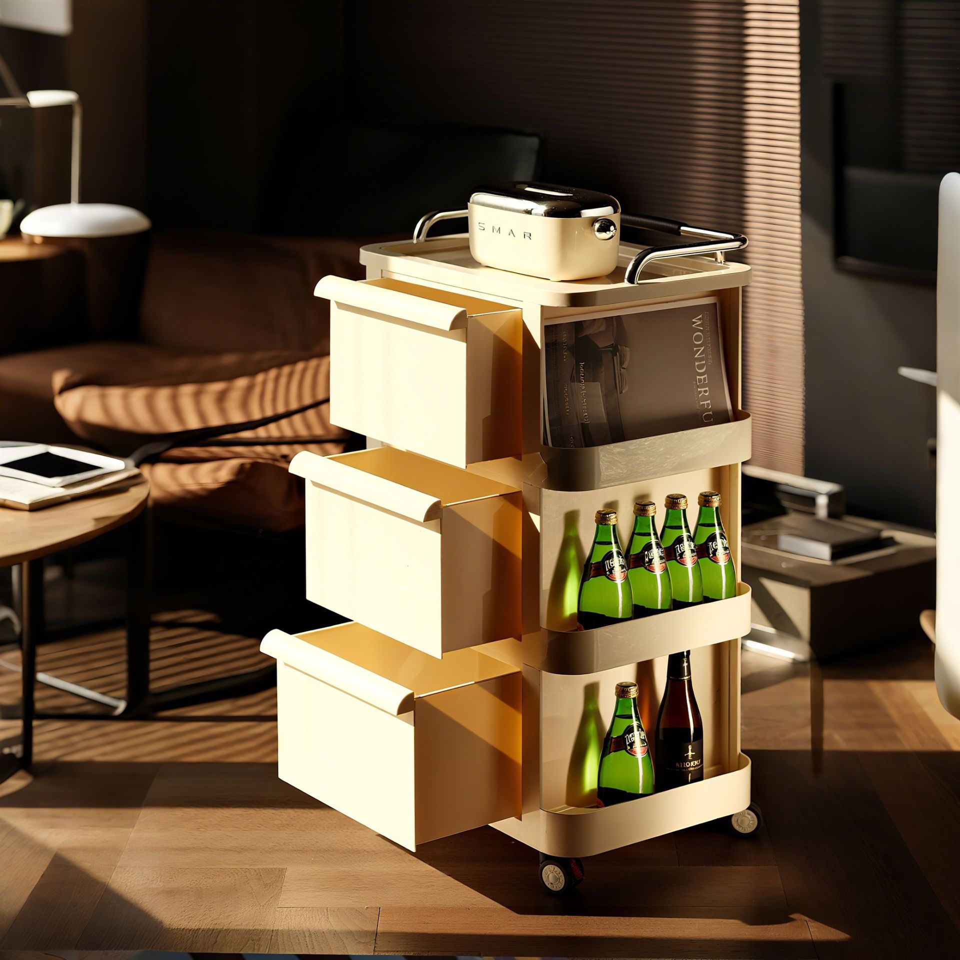 収納ラック多機能トロリー家庭用日用品収納カート車輪付き寝室ベッドサイド引き出し風棚