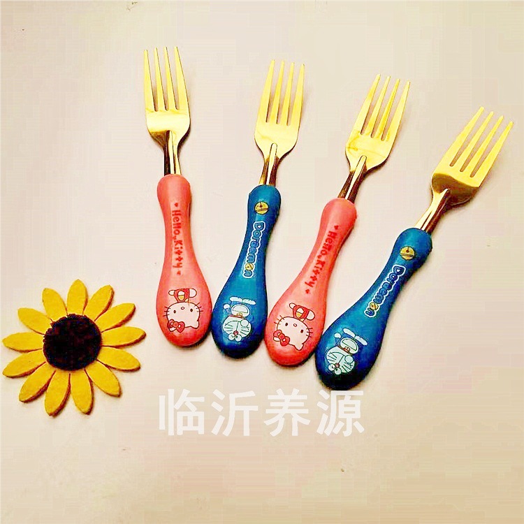 子供の漫画のフォークのご飯のフォークの金色の小さいフォーク