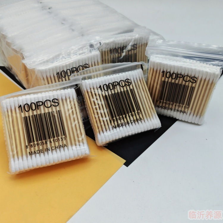 綿棒100本入り、使い捨て両頭綿棒、クリーニング綿棒、卸売、黒バーコード版をメーカーから直接供給