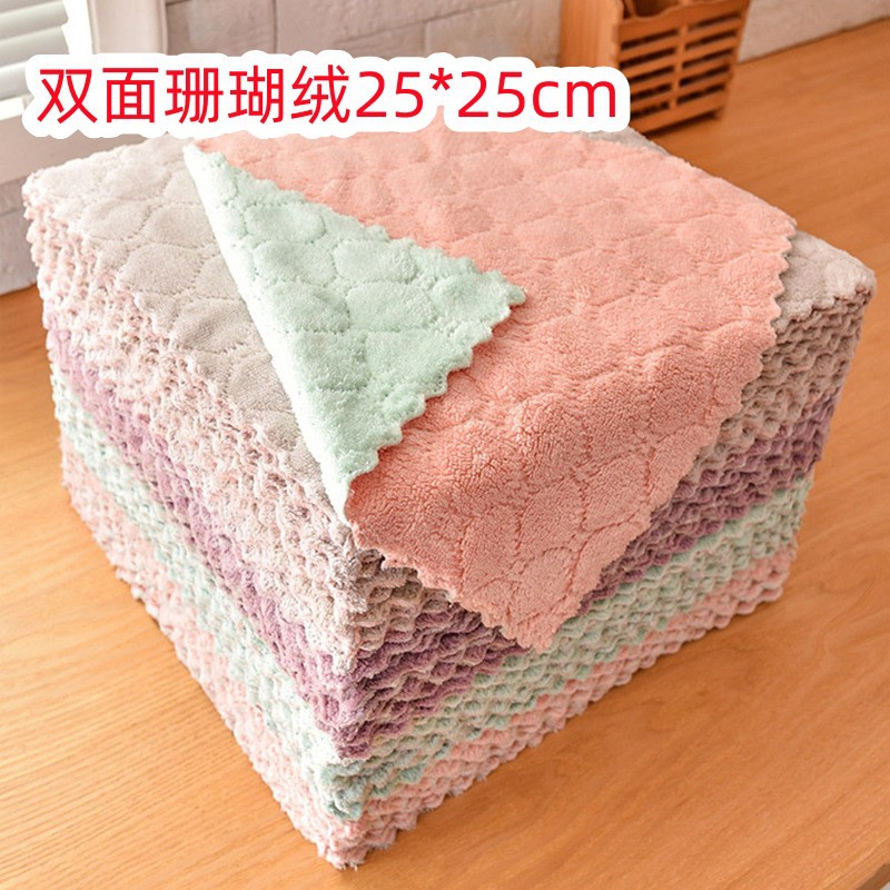 両面コーラルフリース布押縁25*25cm清潔雑巾家庭用キッチンレストラン汚れ吸水拭き