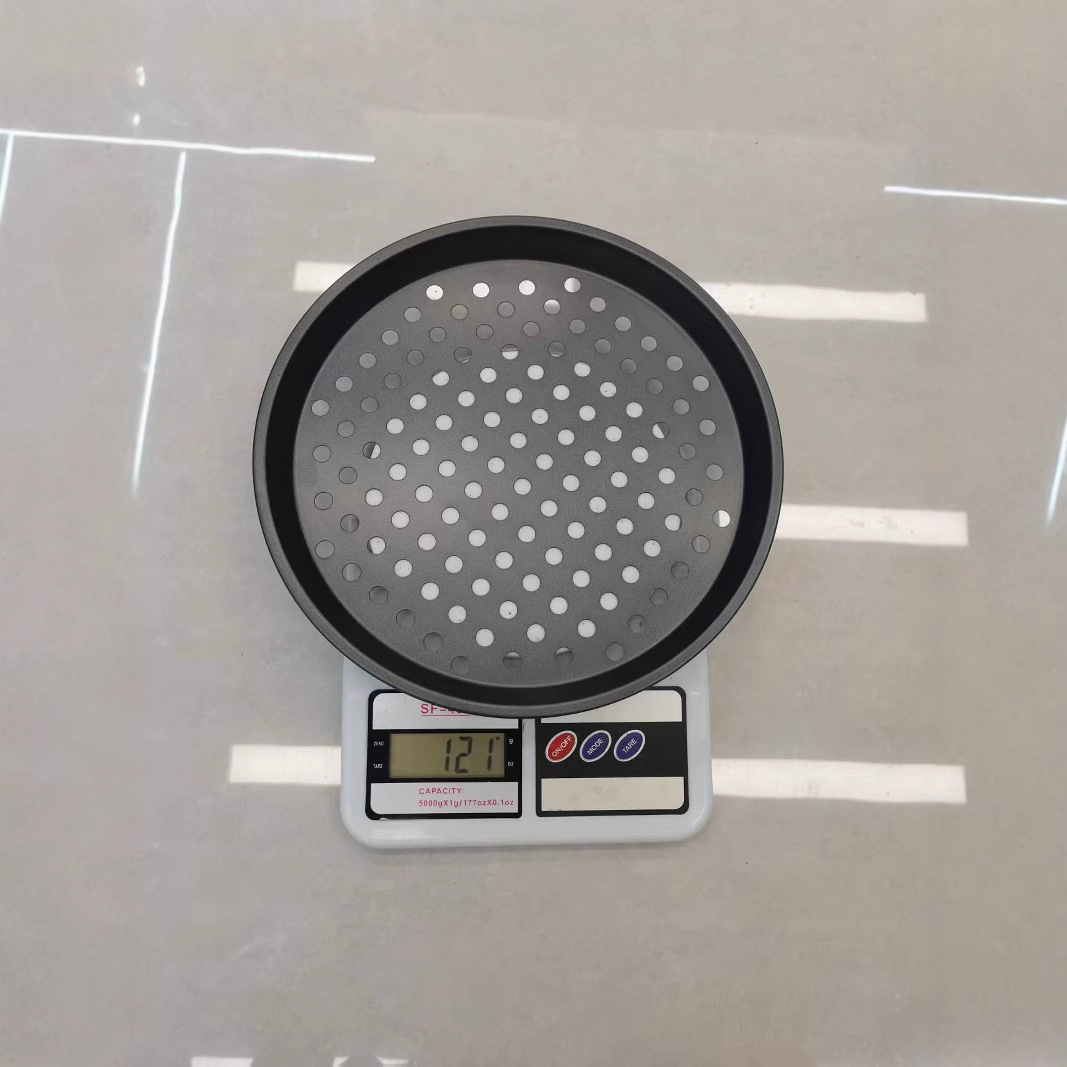 国境を越えたスポット0.4mm厚さのパンチングピザ皿黒色非粘着円形炭素鋼商用炭素鋼ピザ焼き皿