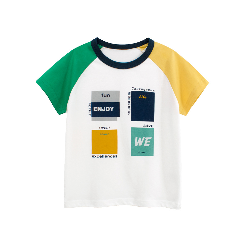 27kids 夏男の子カラーブロック半袖 Tシャツ小中型子供用レタープリント半袖ボトムシャツドロップシッピング