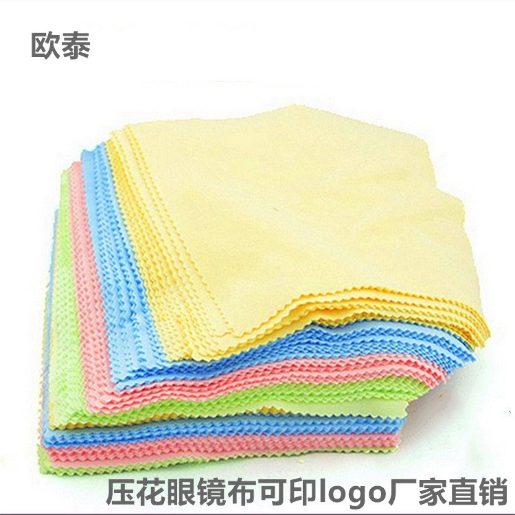 メガネ拭きメーカー直販、輸出用サングラス拭き、エンボス加工超極細繊維拭き、ロゴ印刷可能