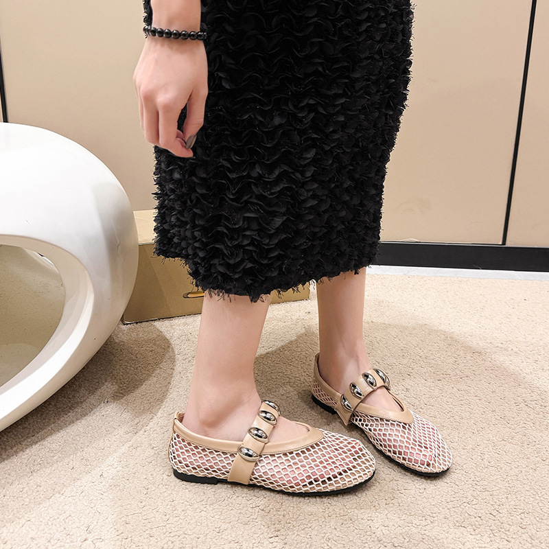 メアリージェーンワンバックルレディースシューズ春の新作フラットシューズラウンドトゥメッシュ中空快適なバレエフィッシュネットシューズ