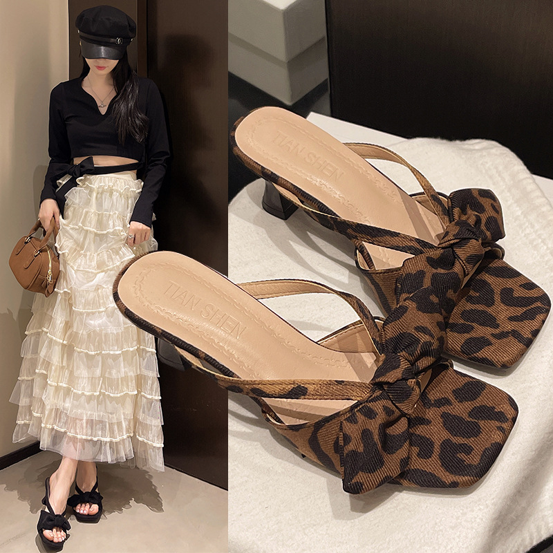 2025春夏新作デザイン感小衆サンダル女性本革フラット蝶結び包頭半スリッパ女性外着