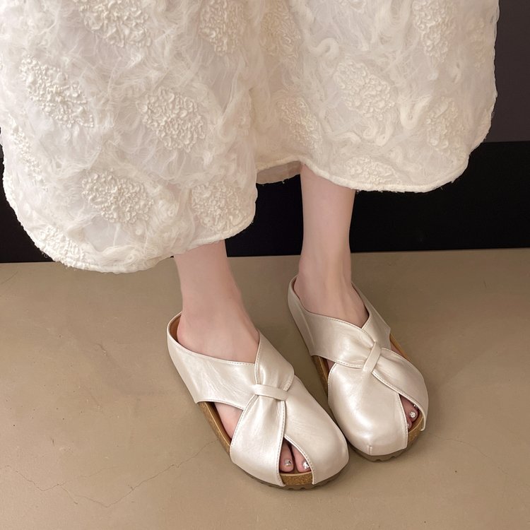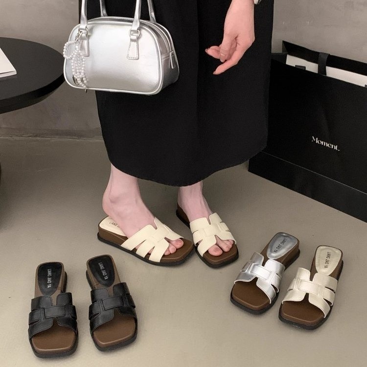 2025 ファッショナブルで多用途な女性用夏用スリッパ、新しいニッチな平底ソフトソールビーチサンダル、ソフトレザーサンダル